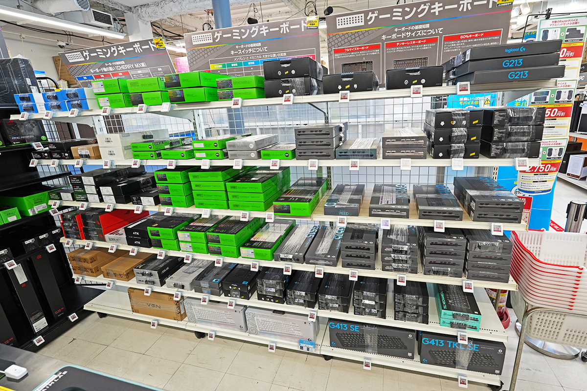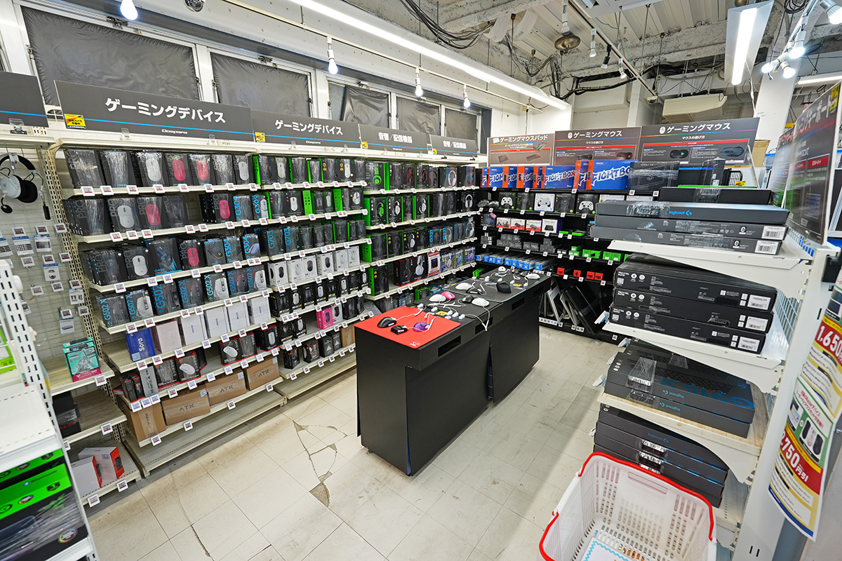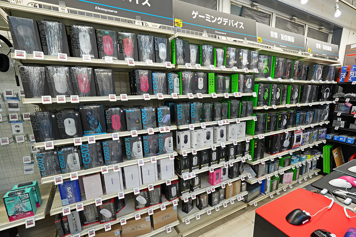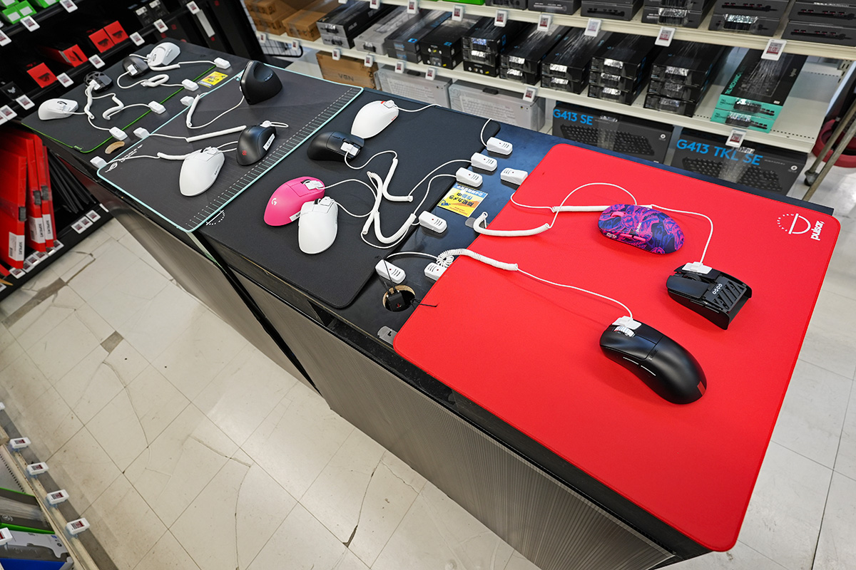 ゲーミングデバイスのエリアはデモスペースもあり、多数のデモ機も用意されている。人気ブランドのモデルを中心に多数のデバイスが在庫販売されており、近隣のユーザーにはうれしい品揃えといったところだろう。