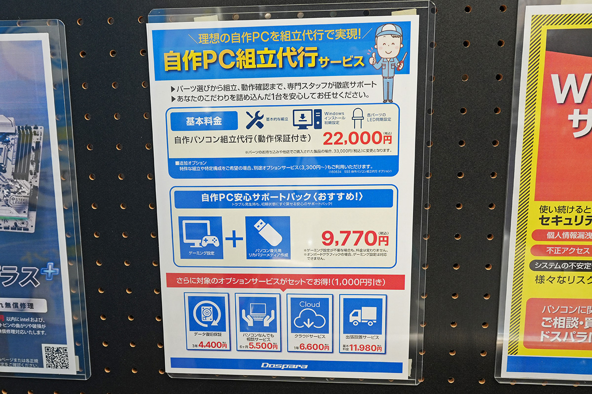 製品の販売だけでなく、ドスパラ横浜駅前店ではサポートの相談も多いという。このためサポートの窓口も広めのスペースが確保されている。