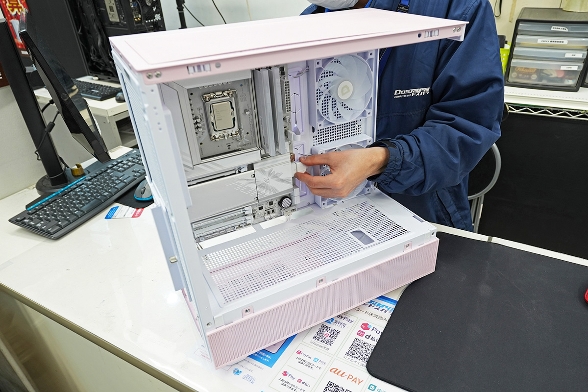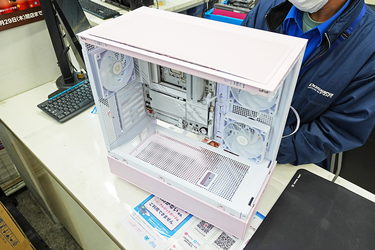 そこでニーズが高まっているのが自作PC組立代行のサービス。PC組立の知識がなくても、ホワイトやブラックで統一したPCはもちろん、ドスパラセレクトのパステルカラーのPCパーツをふんだんに使った個性的なPCなどを、サービスを利用することで構築してもらえる。デモ機と全く同じPCが欲しいと言われることも結構あるそうで、自作PC組立代行を依頼するユーザーも増えつつあるとのことだ。