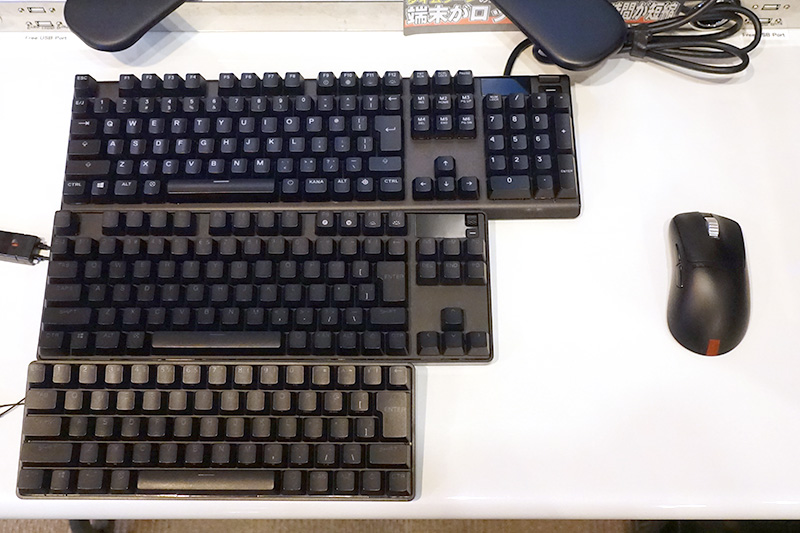 最近では、大きなデスクを置きづらい日本の住宅事情なども相まって、マウスの操作スペースを広く取れるため、テンキーレスや省スペースのコンパクトなモデルが人気だという。