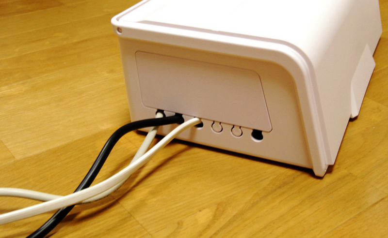 側面の穴からコードを通し、付属の側面用パネルを取り付ければ完成(?)だ。スパゲッティのようなコードが本機の中に収納されるのは、思っていた以上に気持ちいい