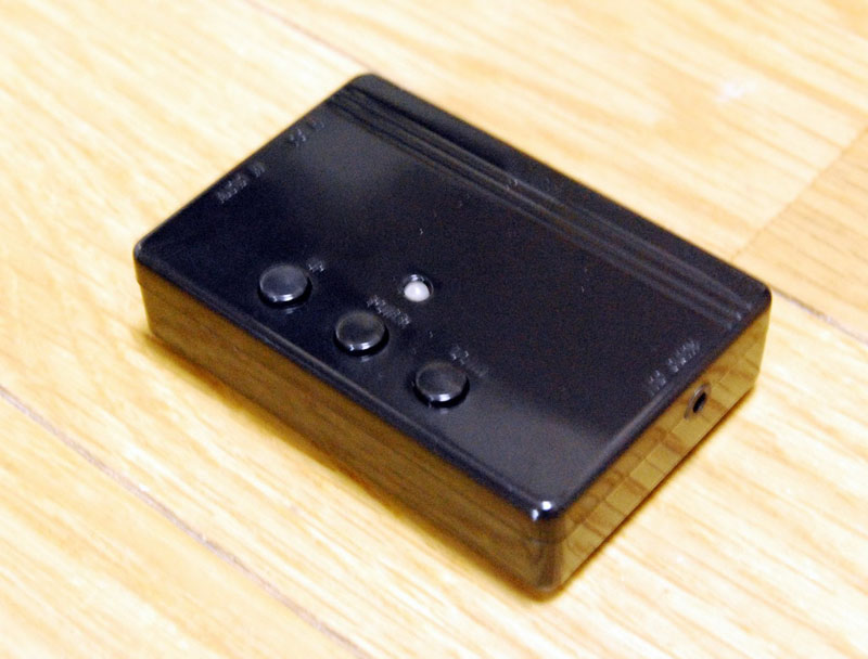 コントローラボックスの3つ並んだボタンは、写真左側から音量アップ/電源オン・オフ/音量ダウンだ。消音(ミュート)ボタンがないのが残念なところ