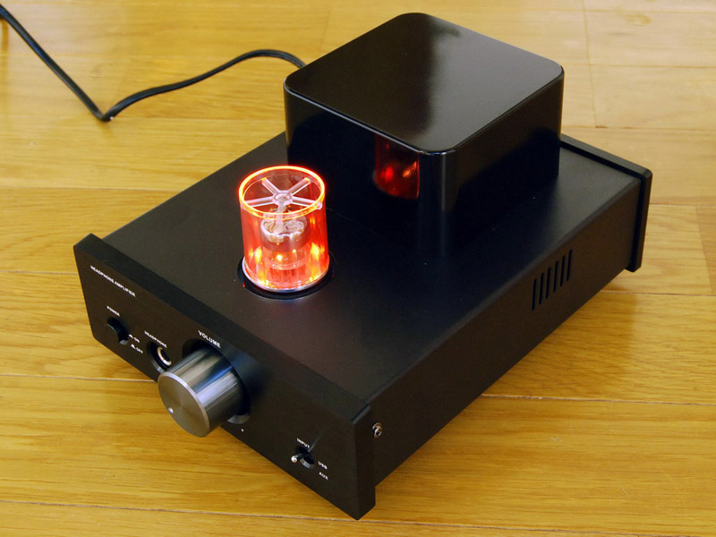 DN-HPA509B。中央でオレンジ色にライトアップされているのが真空管だ