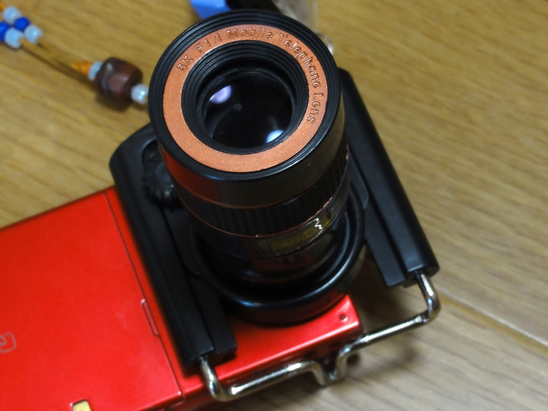 レンズを装着した状態。続けて携帯電話をカメラモードに切り換えて、液晶画面でレンズの位置を微調整すれば完了だ