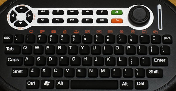 キー配置は文字キーの上に特殊キーとカーソルキー、スティックが配置されるというもの。主要な文字キーは英語フルキーボードと同様だが、記号の位置などは日本語キーボードと異なるため、不慣れなユーザーは戸惑うかもしれない