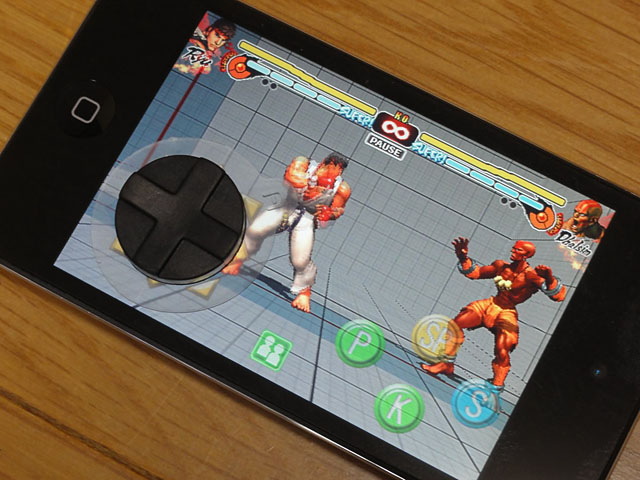 円形コントローラーはこのように、画面上の矢印と円形コントローラーの十字印を合わせて貼ればよい。大きさは合わせてあるので、このようにピッタリだ。実はストIVの場合、このように方向キーだけでも操作感はかなり良好だった