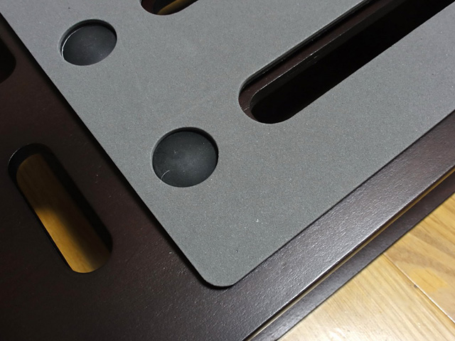 滑り止めシートは肌に優しい発砲シリコン系素材。滑り止めとしての効果は確かなものだ。本体とはあらかじめ貼られた粘着シートで固定する