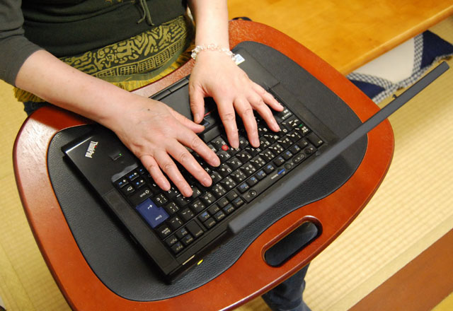 こちらは板形 ビーズクッション付きタイプのDN-CW01を使っているところ。こちらはビーズクッションによる安定感と、膝への優しいタッチが魅力だ。この状態では、面積の大きさが非常によくわかる