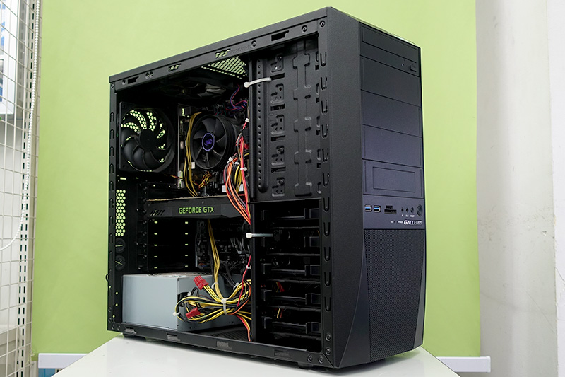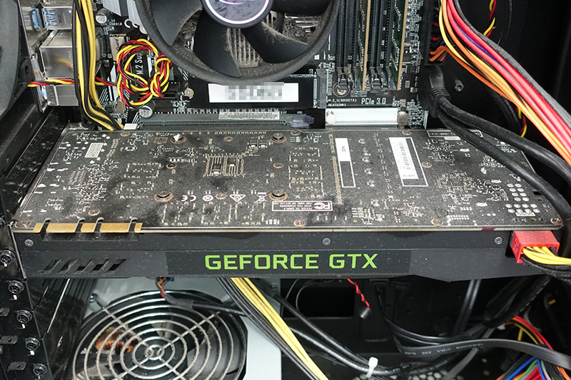 用意したPCは、オフィス内で使われていたGALLERIAのBTOゲーミングマシン。パッと見の外観はそれほど汚れていないようにも見えるが、中を開けてパーツを見るとなかなかのホコリの積り具合だ。