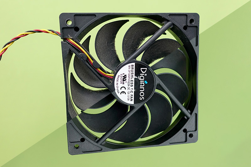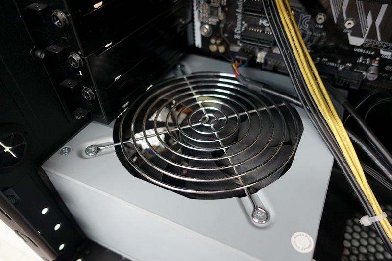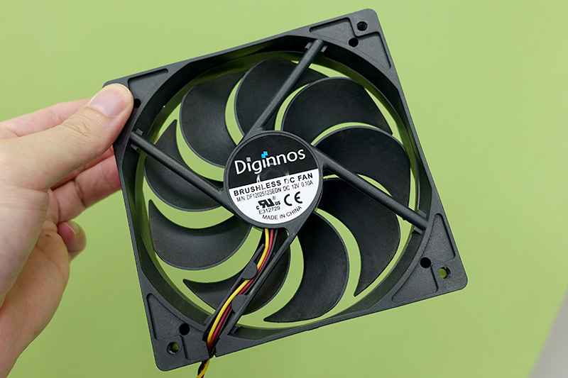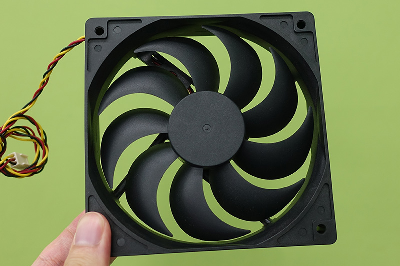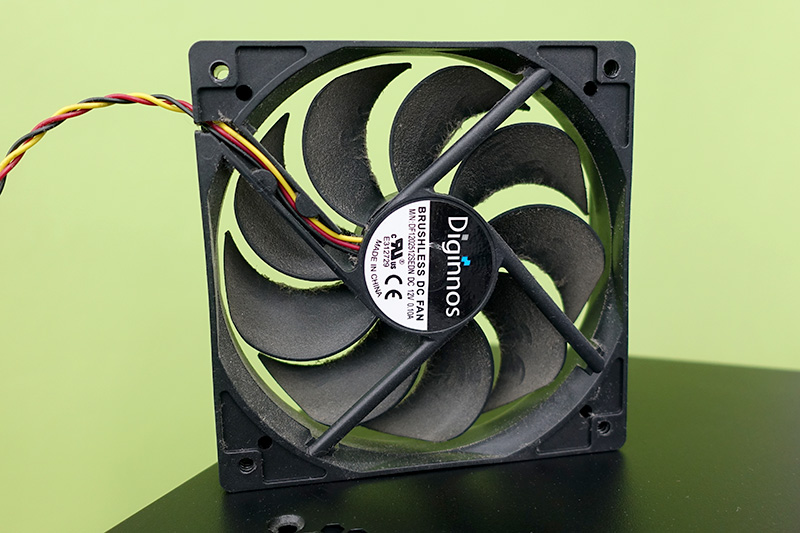 エアーコンプレッサーでケースファンのホコリはほぼ完全に除去されており、本来の精悍な黒さを取り戻している。