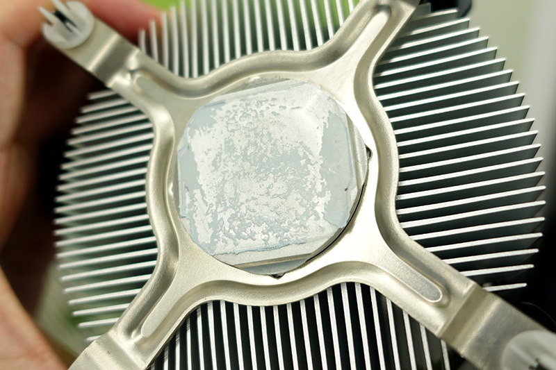 クリーニング for ゲームコースでは、CPUグリスの交換も行ってくれる。今回のマシンでもグリスが乾燥し始めており、塗り直しによって冷却性能の回復が期待できる。