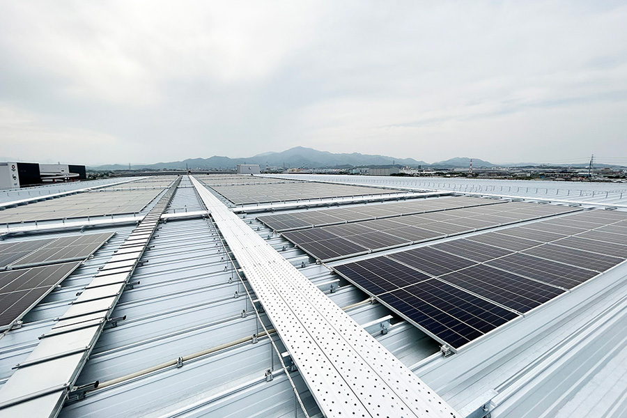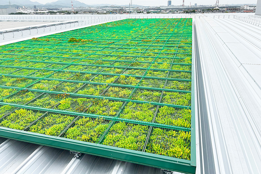 ちなみに、倉庫部分以外の事務所廊下やエレベーターなど共用部の電力は屋上の太陽光発電でまかなわれている。屋上は発電スペースとして利用されているだけではなく、緑地スペースも設けられている。