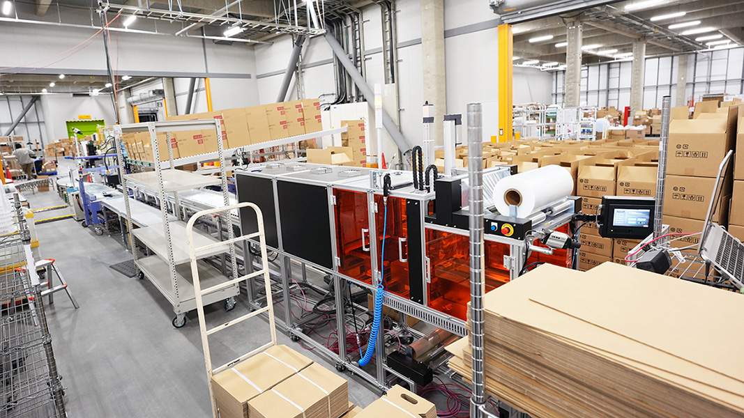 「半自動梱包機」により出荷可能量が倍増、資源も節約 進化する最新の物流倉庫