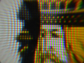 FS2333の液晶パネルは、先代FS2332から引き続きIPS液晶パネルが採用されている。実際にパネルをルーペで観察してみると、画素仕切りはとても狭く、開口率の高いサブピクセル構造になっていることが分かる。この開口率の高さと整然とした画素形状は、普段の視聴位置から見たときに、ドット単位の表現の美しさに現れてくれる。