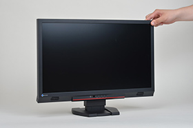 画面サイズは23インチ(対角58cm)。視聴距離が数十センチとなるパーソナルモニター製品としては、小さすぎず大きすぎずのジャストサイズだ。解像度は、今や基準解像度となった感もある1920×1080ドットのフルHD解像度。型番が"+1"されただけなので、単なるマイナーチェンジかと思いきや、実は本体デザインが大きく変更されており、それに伴って各部に改良の手が加えられている。