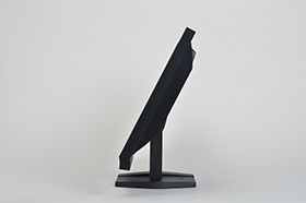 | 新搭載のスタンドは、前後のチルトが25°、左右のスイーベルが各172°可能になった | ||