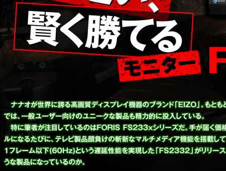「業界最速!」を謳う「低表示遅延性能」と「高速応答速度性能」の部分は競合製品とのスペック競争の産物という感じはするが、しかし、そうしたアピールポイントにも確かな信頼感が伴っているように思えるのは、やはり「EIZO」というブランド力があるからなのだろう。取っ手の装着、スタンドやリモコンのリファインといったような、ユーザーからのフィードバックを元に改良を重ねてきている部分などは、特にEIZOらしい"きまじめさ"が感じられて好印象を抱く。