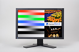 この「CG242W」は、コンシューマ向け液晶モニターの表示可能域(sRGB)を大きく超えるAdobe RGBカバー率97%(面積比100%以上)の広色域を持っている。またsRGBやJMPAカラーも余裕をもってサポートしている。プリンターなどデバイス間のより厳密なカラーマッチングや広色域のカラーマネージメントシステムの構築が可能な仕様だ。解像度は1920×1200で、最大表示色は約1677万色8bit対応(約680億色中/12bit-LUT)。ここまで見れば現在ある液晶モニターの中でもトップクラスの仕様だということはわかる。ところがそれ以上に個別の色コントロールする技術「3D-LUT」を導入している。これはRGB各色別々のテーブルで調整していたものが、RGB立体状で1つのテーブルとしてコントロールするものだ。この技術で今まで以上に正確な色やグレースケールの表示が可能になっている。