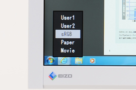 プリセットの表示モードとしては、sRGBモードと映像表示に最適化されたMovieモードに加え、表示映像を紙に近い見え方に調整できる「Paperモード」を用意。これは本来、紙に似た色味とコントラストに調整することで、目への負担を和らげ疲れ目を抑制するための機能だが、簡単な印刷物を作成するときなどに印刷後の雰囲気を画面上でイメージする場合などに重宝しそうだ。ユーザーが調節したパラメータを記憶するUserモードも2モード用意されているので、表示設定を用途に合わせて調節し、瞬時に切り替えて利用することも可能だ。