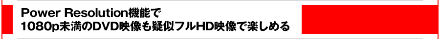 なお、Power Resolution機能はフルHD、1080pの映像にも効かせることができる。なので1080pに拡大してHDMI出力してしまうDVD機器(PS3のDVD再生時もこれに相当)でのDVD再生時にもちゃんと活用できるので安心されたし。