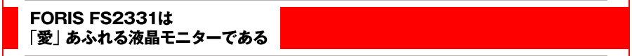 こうして見てくると、FORIS FS2331は、FORISブランドの入門機という位置付けながら、上位機を喰いそうなほどの性能と魅力を備えていることが分かってくる。ナナオの新製品は、毎回、上位モデルを食いそうな完成度で、他人事ながら、全く自虐的なメーカーだと思うのだが、それは裏を返せば1つ1つの製品を、モデルラインナップ構成を超えて、「愛」を込めて製品を開発していることの現れ…と思えなくもない。