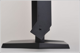 この他、アナログの音声入力端子としてステレオミニジャック端子を備える。これはD-Sub15ピン端子やDVI-D端子経由でPCを接続した際の音声ラインとして活用するのが模範的な使い方になる。