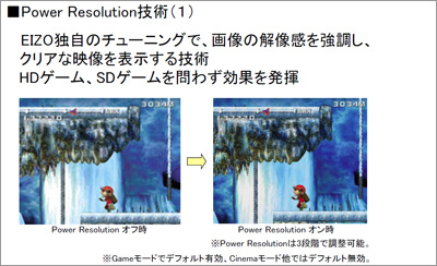 1080p未満の映像を入れたときも、ちゃんと1920×1080ドットのフル解像度に解像度変換して表示してくれるので、このあたりの使い勝手はテレビと全く変わらない。それどころか、一般的なテレビ製品にはないユニークな機能を使って、1080p未満の映像をFORIS FS2331にて高画質で楽しむこともできる。それがPower Resolution機能だ。