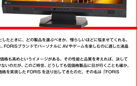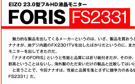 この性能と品質でこの価格。FORIS FS2331は、ナナオの、技術革新とユーザーに対する「愛」の結晶だ。