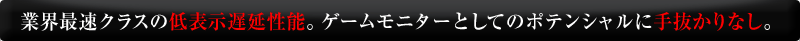 例えば、ネット対戦などにおいて、各プレイヤーのモニターの表示遅延量は、そのゲームに参加する全てのプレイヤーに対して課せられる、止むことのない逆風みたいなものだ。これの「多い/少ない」がプレイの有利不利に常について回る。