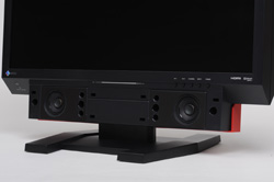 FORIS FX2301TVは、型番からも想像ができるとおり、地上デジタルテレビチューナー内蔵のテレビ製品という側面もある。そのためスピーカーが本体に埋め込まれている。スピーカーは直径5cm、出力2Wのものがステレオ構成で2基搭載されている。一般的なテレビ番組を視聴するには不満のない音質で、HDMI入力、ビデオ入力、PC入力経由の音声信号もちゃんとこのスピーカーで鳴らすことができる。
