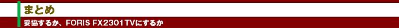 この3つの要素、どれか1つでも気になったならば、今現在、FORIS FX2301TVしか選択肢がないのだ。3つとも妥協できれば、他機種を選ぶのもいいだろうが、それができるかどうか…。