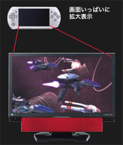 この機能を活用してPSPゲームをプレイすると、PSPの映像が23インチ全域に拡大されてプレイできるため、PSP本体をコントローラに見立てた据え置き型のゲームをプレイしているような気分になれる。まさに「自宅にいるときくらい、PSPを大画面でプレイしたい…」という人には、うってつけの機能だといえる。