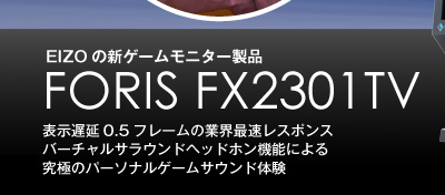 まずはじめに、ゲームモニターとして最重要視されるのは表示遅延の少なさだ。最近、やっと他社からも低表示遅延機能を備えたテレビ製品やモニター製品が出てきたが、EIZOは早くからこの遅延フレーム数を潔く公開し、昨年発表されたFORIS FX2431TVでは、その遅延フレーム数が業界最速の約1フレームであることをアピールした。今回、FORIS FX2301TVでは、FORIS FX2431TVの遅延フレーム数をさらに下回る0.5フレームを実現してしまった。業界最速をEIZO自身が更新してしまったのだ。