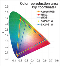 実は、FORIS FX2431は、解像度は先代と同じWUXGAだが、採用液晶パネルのグレードを先代から引き上げ、広色域パネルを採用しているのである。FORIS FX2431の採用パネルはAdobe RGBカバー率96%、NTSC比92%を実現しており、先代のFlexScan HD2452Wを上回るのだ。ちなみに、この広色域スペックは、EIZOのプロ・デザイナー向けの高画質モニターシリーズ「FlexScan SX」シリーズと同等である。FORIS FX2431は色ダイナミックレンジを拡大することで、先代よりも色ディテールの描写力を上げているのだ。この部分の性能向上は、先代までの「ハイエンドホビーユーザー向け製品」という位置づけから一段上がった「プロ用途にも耐えうる製品」という訴求力までを身につけたことになる。今後は、映像制作、デザインワークス、ゲーム開発…など、様々な開発現場への導入検討も始まることだろう。