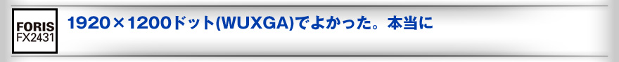 前置きが長くなったがFORIS FX2431はちゃんと1920×1200ドット(WXUGA)パネルを採用してくれている。ほんとにありがとう、といいたい。