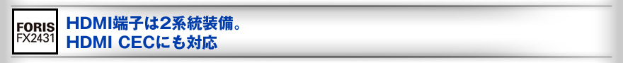 なお、FORIS FX2431のHDMI端子は、最新のHDMI関連機能の一つであるHDMI CEC(Consumer Electronics Control)への対応がなされ、これも進化ポイントとして訴求されている。これはFORIS FX2431と接続された、HDMI CEC対応のAV機器を連動動作させる機能だ。この機能を活用することで、たとえばDVD/ブルーレイ機器の電源を入れることでFORIS FX2431の電源が入ったり、FORIS FX2431のリモコンでDVD/ブルーレイ機器の再生制御が行えるようになる。接続に難しい手順は不要、ただAV機器とFORIS FX2431を普通にHDMIで接続しておくだけでこの機能が利用できる。ちなみに、PS3、Xbox360はHDMI CECには対応していないので、この機能は活用できない。現状はFORIS FX2431をAVモニターとして活用するためのもの…という捉え方でいいだろう。HDMI CEC機能のためにAV機材を買い換える必要まではないだろうが、すでに手持ちのAV関連機器がHDMI CEC対応製品ならば是非活用したい。