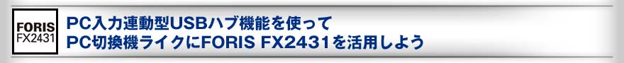 FORIS FX2431にはPC1、PC2の2系統のUSBアップストリーム入力端子を装備しているので、あの便利なUSBハブ機能が引き続き利用できるのだ。PC液晶モニターにUSBハブ機能を搭載した製品はいまや珍しくはないが、FORIS FX2431のように、表示しているPC映像に連動したPC切換機能を有しているのは少数派。