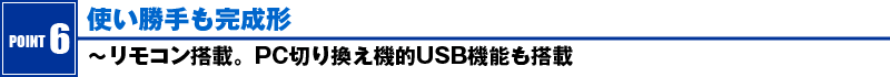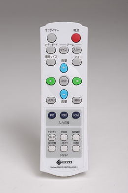 ところが、FlexScan HD2452Wでは、専用の小型リモコンを付属させており、入力切換はメニューを潜って操作することなく、映像カテゴリで分けられた[PC][VIDEO][HDMI]をそれぞれ押すことでボタン一発で換えられるようになっている。アスペクト比も、リモコン上の[画面サイズ]ボタンで一発で切り替え可能。これはモニター製品の範疇を遙かに超えた使いやすさだ。