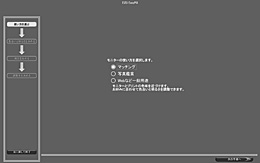 次に、3つの選択肢が現れるので、モニターの使い方に合わせてこれを選択。そして少々作業───設定するモニターの明るさや、プリント用紙との白色合わせを感覚的に行うのだ。でも、さほど厳密でなくてよく、ユーザーが「このくらいかナ」と思う程度でも大丈夫。