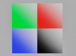 次に、グラデーション画像を表示して比較してみる。下の写真は、Photoshop CS5で16bitカラーで作成したRGBとKのグラデーションをFlexScan SX2762W-HXに表示し、Nikon D3で撮影したデータをコントラスト調整した。