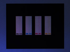 肉眼で見たところ、CMYはよく見え、Kはよく見えなかった。撮影したデータのトーンカーブを調整したデータを見るとKも写っている。レタッチしてみると、わずかながら階調があることがわかる。