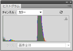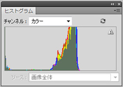 上の写真のヒストグラム(他社製の一般的なコンシューマ向けPCモニター) |