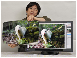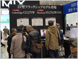 先日開催された「CP+2011」に行かれた方も多いと思う。私ももちろんウロウロしていたのだが、ナナオのブースでしばらくヨダレを垂らすこととなった。もちろん最初に見るのは、大好きなプロ用モニター「ColorEdgeシリーズ」だ。しかし今回は、先日新発売の新型モニターのスペックに、「やっと理想的モニターが登場した!」と勇んで見に行ったのである。それが「FlexScan SX2762W-HX」だ。注目点はなんといっても、IPSパネルを搭載し、解像度が「2560×1440」の27型であるという点だ。いままでFlexScanシリーズでは、「FlexScan SX3031W」が解像度が一番高く2560×1600だが、パネルはVAだった。また、27型の「FlexScan SX2761W」も、同様にVAパネルであり、解像度は1920×1200だった。どちらも生産は終了しているが、今回の「FlexScan SX2762W-HX」は、FlexScanのフラッグシップモデルとして、低色度変位のIPSパネルを搭載してきた。しかも、2560×1440という高解像度で登場したのだ! さらに、パンフレットや商品説明を見た範囲では、表示ムラ低減回路はもちろん16bit-LUTによる階調表現や、10bit表示が可能! そして輝度色度安定回路など「ColorEdge」かと勘違いするぐらい性能が近づいているではないか!