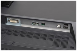 スタンド支柱部は丸みを帯びたデザインで、スタンド底面は丸く、一見小さく見えるが、重い液晶本体をしっかり支えている。また、入力端子としては、DVI-Dが1系統、これから主流になるであろうDisplayPortが1系統、マックユーザーに嬉しいMini DisplayPortも1系統装備。すべてのポートで10bit入力に対応している。