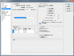 (2)Photoshop CS5の環境設定から、パフォーマンスを選択し、「OpenGL描画を有効にする」にチェックを入れる |