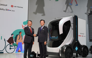 いすゞ 南真介社長とUDトラックス 伊藤公一社長がグループの取り組みを説明