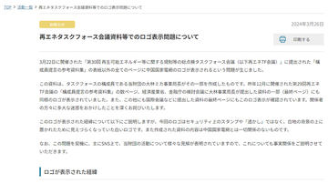 背景にロゴが同化し気付かず。再エネタスクフォース資料の中国企業ロゴ表示問題