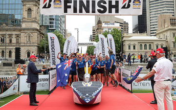 ソーラーカーの世界大会で、ブリヂストンの「エンライトン」技術搭載タイヤ装着チームが優勝