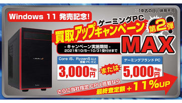 パソコン工房、Windows 11発売記念のゲーミングPC買取額増額キャンペーン