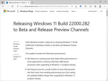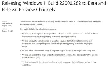 MicrosoftがBuild 22000.282をBeta/Release Previewチャネルでテスト
